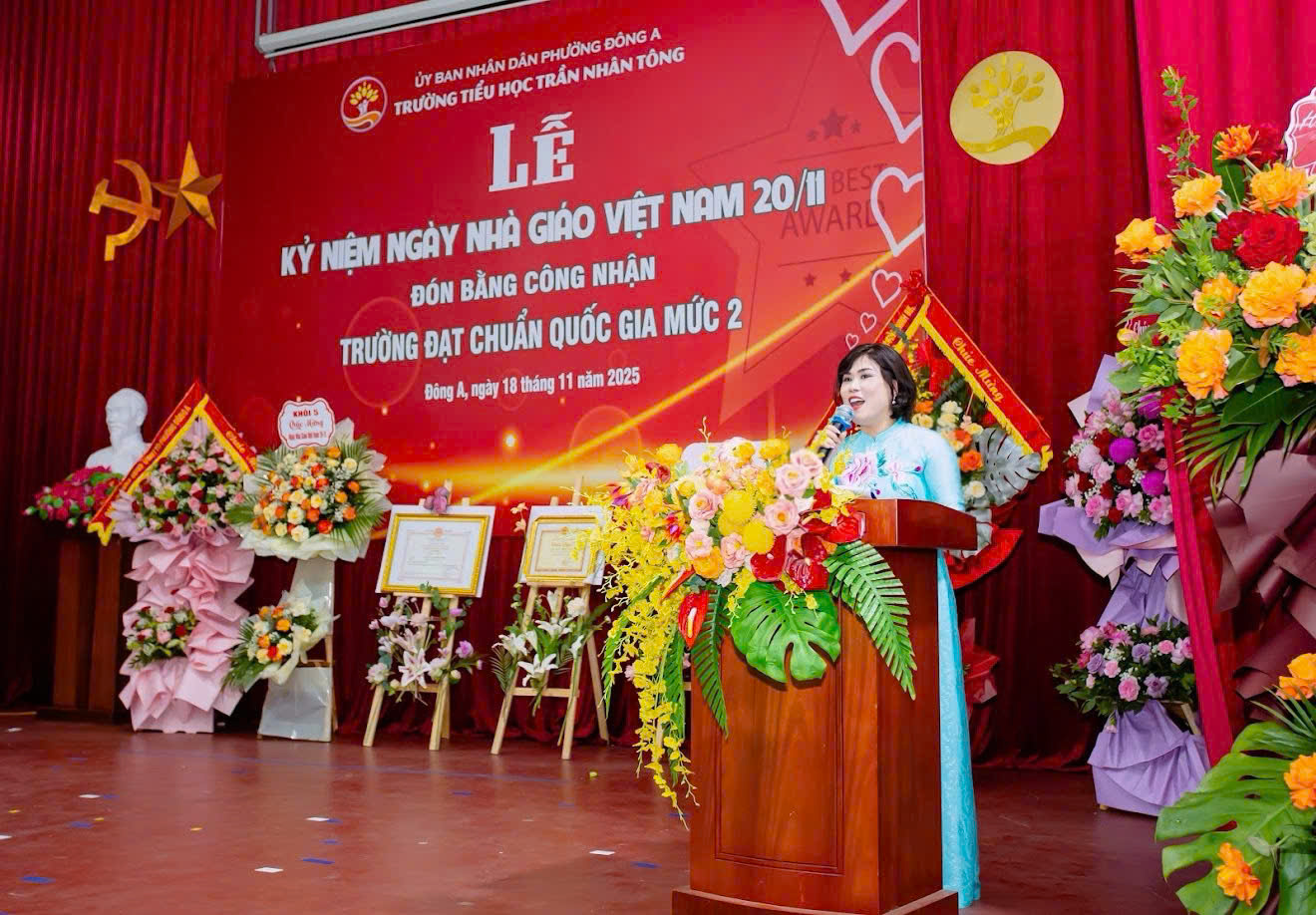 Lễ kỷ niệm càng ý nghĩa khi Trường được nhận Bằng khen của UBND tỉnh, Bằng công nhận Trường chuẩn Quốc gia mức độ 2, Kiểm định chất lượng giáo dục mức độ 3. Đó không chỉ là thành quả của nỗ lực bền bỉ suốt nhiều năm, mà còn là minh chứng cho tinh thần đoàn kết, sáng tạo, đổi mới không ngừng của tập thể sư phạm nhà trường.